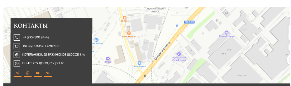 *здесь содержательно просто дублируем эту секцию, только добавляя немного воздуха и можно дополнительных граф элементов вокруг. единственное: прошлый дизайнер сделал плашку контактов наложением на карту – лучше ее отделить от плашки, поместить справа отдельно (это будет интерактивная яндекс-карта)